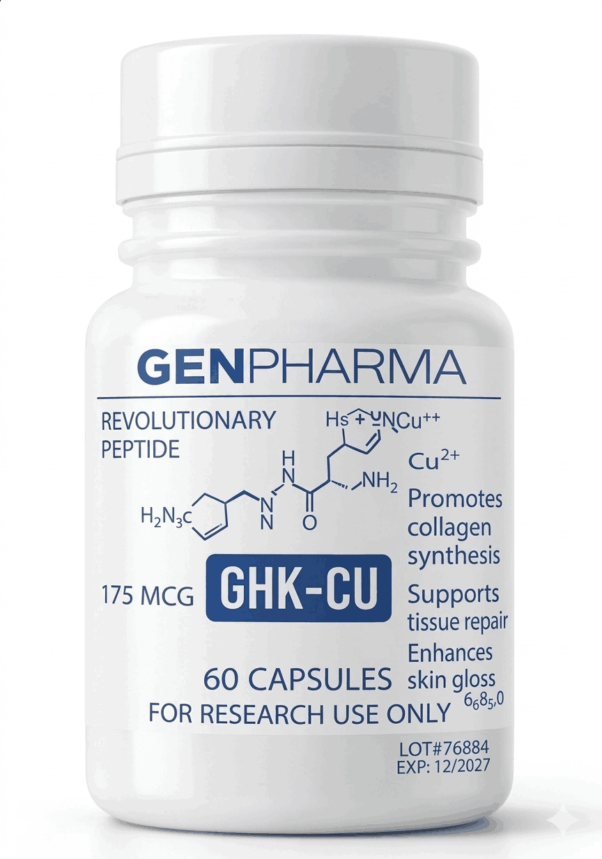 O GHK-CU 175mcg GenPharma é um suplemento desenvolvido com peptídeo bioativo ligado ao cobre, amplamente estudado por seu papel em processos biológicos relacionados à regeneração celular e à síntese de colágeno. Esse composto tem sido analisado em pesquisas voltadas à renovação da pele e suporte estrutural da matriz extracelular.